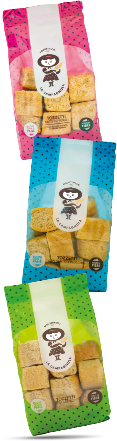 I nostri Tozzetti, disponibili in tre varianti – Tozzetti di Grano, Tozzetti Misti Integrali e Tozzetti al Finocchio – nascono da un impasto leggero e ricco di fibre, grazie alla presenza di crusca e farine integrali, offrendo una risposta semplice e sana a chi cerca autenticità senza rinunciare al piacere.
